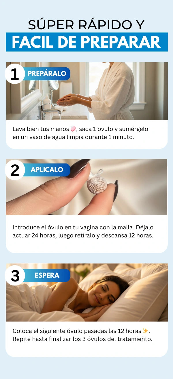 Cada paquete detox incluye 3 óvulos cuidadosamente formulados para promover la desintoxicación y el equilibrio íntimo. Ideal para un tratamiento completo y efectivo.